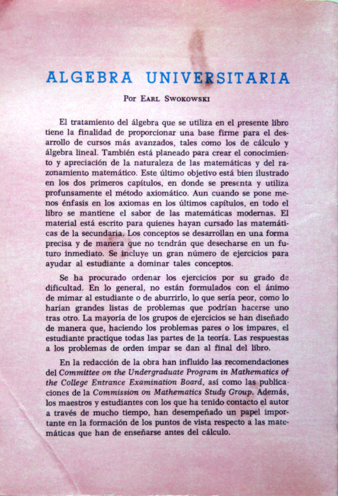 Earl Swokowski, CIA. Editorial continental, S. A. de C. V., 1969, 414 p. Rústica en buen estado, firmado por anterior propietario, marcas de cinta adhesiva, 15.6 x 22.5 cm #elarbollibreriadeuso