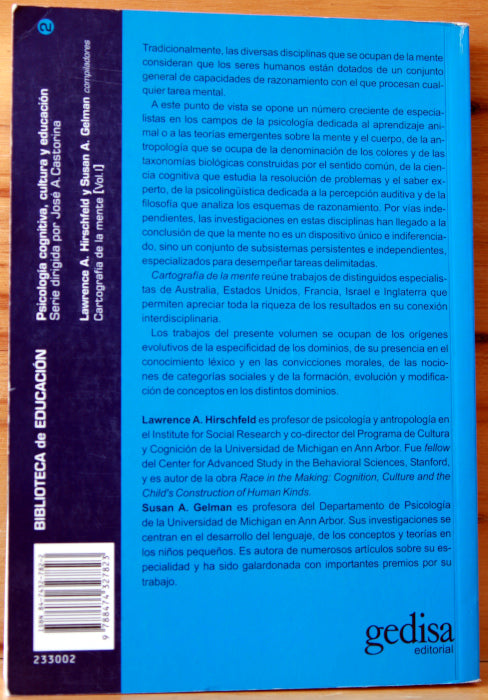Lawrence A. Hirschfeld y Susan A. Gelman (Compiladores), Gedisa Editorial, Biblioteca de la Educación, 2002, Serie Psicología cognitiva, cultura y educación, 379 p. Rústica en buen estado, 15.5 x 22.5 cm #elarbollibreriadeuso