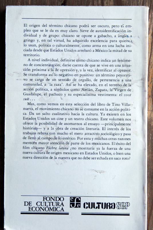 Tino Villanueva, Ed. FCE., 1985, 199 p. Rústico en buen estado, 21 x 13 cm #elarbollibreriadeuso