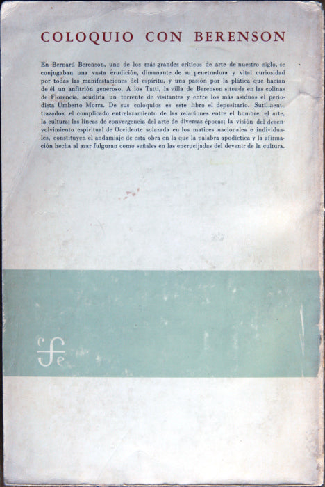 Conversaciones sobre arte entre Morra y Berenson, compiladas aquí de manera sistemática. Berenson fue uno de los más grandes historiadores del arte italiano, especialmente del Renacimiento