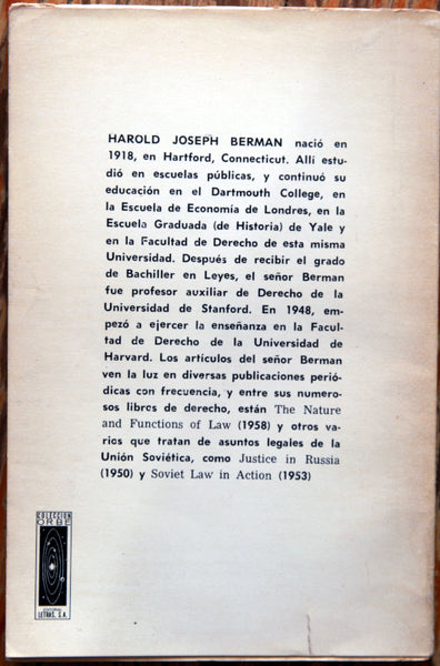 Harold J. Berman, compilador; Ed. Letras 1965, 244 p. Rústica en buen estado, 12.9 x 19.5 cm #elarbollibreriadeuso