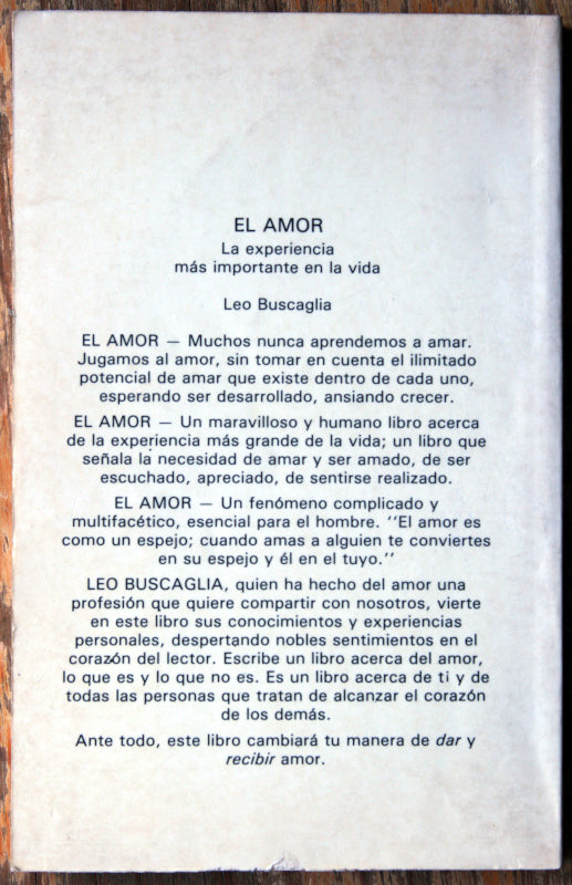 Leo Buscaglia, Ed. Diana, 1985, 185 p. Rústica en buen estado, 21 x 13.5 cm #elarbollibreriadeuso