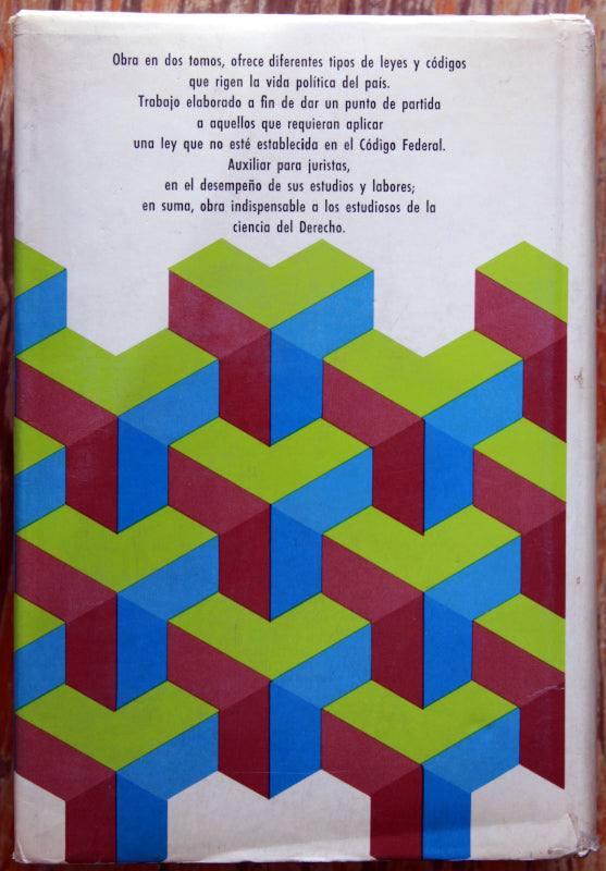 "Este trabajo -realizado en dos volúmenes- es el fruto de una gran labor de investigación en el sistema jurídico dentro del marco nacional. Lo elementos componentes de la Ley Mexicana, como son la doctrina, la legislación y la jurisprudencia, son objeto de minucioso estudio por parte del autor, Obra primordial para quienes estudian o profesan la ciencia del Derecho, y auxiliar eficaz en el conocimiento e las reglamentaciones estatal, federal y distrital. Ofrece la recopilación de los diversos códigos aplicables en el país; las diferencias de éstos, contrastadas, se explican de manera que el lector obtenga nociones pertinentes y, así cuente con un criterio propio respecto a lo justiciable en cada región.