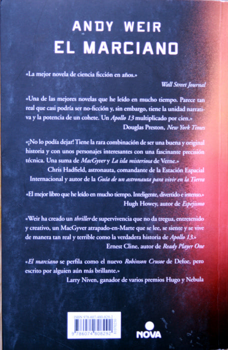 Andy Weir, Ed. B, S. A., 2014, 407 p. Rústica con solapas en buen estado, 14.9 x 22.9 cm #elarbollibreriadeuso