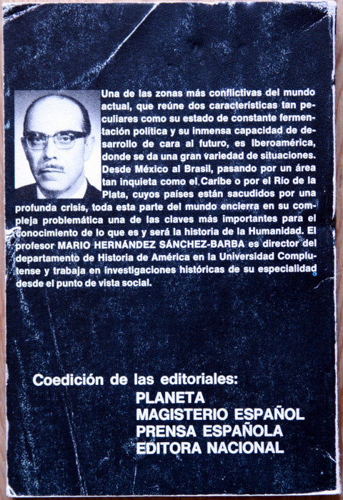 La situación de Iberoamérica en la coyuntura mundial 1945-1975; México, nueva sociedad y conservadurismo político; La tensión nacionalista en el área andina; El río de la plata, área de frustración política; Brasil , del estado novo al estado militar. Contiene fotografías en negro.