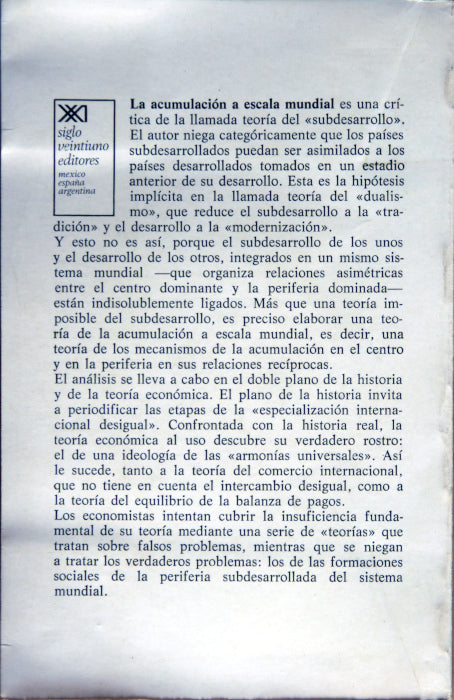 La acumulación a escala mundial. Crítica de la teoría de subdesarrollo