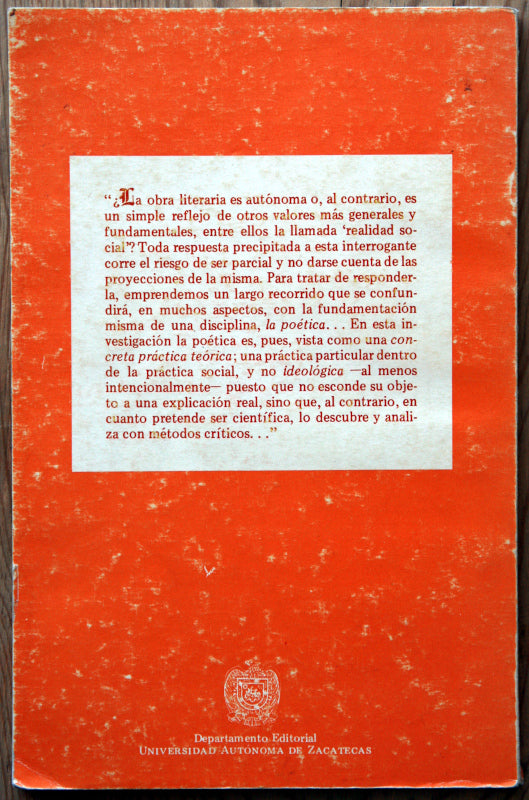 Renato Prada Oropeza, Universidad Autónoma de Zacatecas (UAZ), 1989, 132 p. Rústica con solapa en buen estado, firmado por anterior propietario, con mancha de labial, 21 x 13.5 cm #elarbollibreriadeuso
