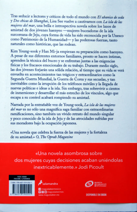 Tras seducir a lectores y críticos de todo el mundo con El abanico de seda y Dos chicas de Shanghai, Lisa See vuelve a cautivarnos con La isla de las mujeres del mar, una bella e introspectiva novela sobre los lazos de amistad de dos jóvenes hanenyeo -mujeres buceadoras de la isla surcoreana de Jeju, cuya forma de vida ha sido reconocida por la Unesco como patrimonio de la humanidad- y las poderosas fuerzas, tanto naturales como históricas, que las rodean.