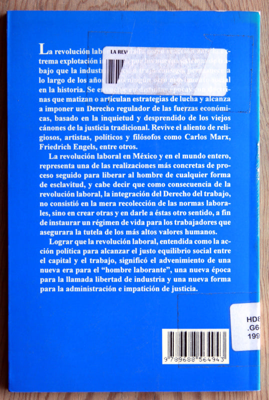 La revolución laboral en México y en el mundo entero, representa una de las realizaciones más concretas de proceso seguido para liberar al hombre de cualquier forma de esclavitud, y cabe decir que como consecuencia de la revolución laboral, la integración del Derecho del Trabajo, no consistió en la mera recolección de las normas laborales, sino en crear otras y en darle a éstas otro sentido, al fin de instaurar un régimen de vida para los trabajadores que asegurara la tutela de los más altos valores humanos.