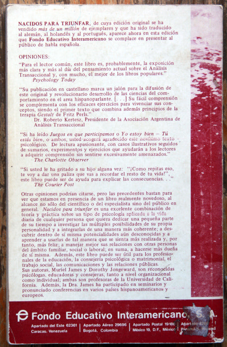 Muriel James y Dorothy Jongeward, Fondo Educativo Interamericano, 1971, 13.4 x 21 cm #elarbollibreriadeuso