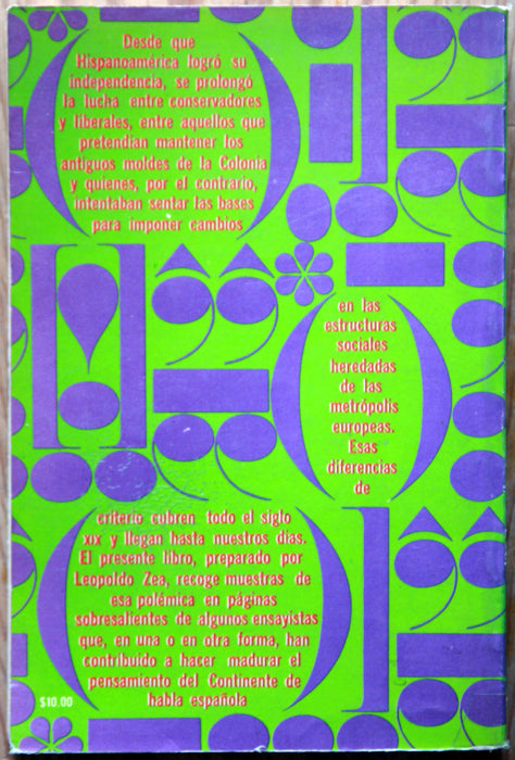 Desde que Hispanoamérica logró su independencia se prolongó una lucha entre conservadores y liberales, entre aquellos que pretendían mantener los antiguos moldes de la Colonia y quienes, por el contrario, intentaban sentar las bases para imponer cambios en las estructuras sociales heredadas de las metrópolis europeas. Esas diferencias de criterio cubren todo el siglo XIX y llegan hasta nuestros días. El presente libro, preparado por Leopoldo Zea, recoge muestras de esa polémica en páginas sobresalientes de algunos ensayistas que, en una o en otra forma, han contribuido a hacer madurar el pensamiento del continente de habla española.