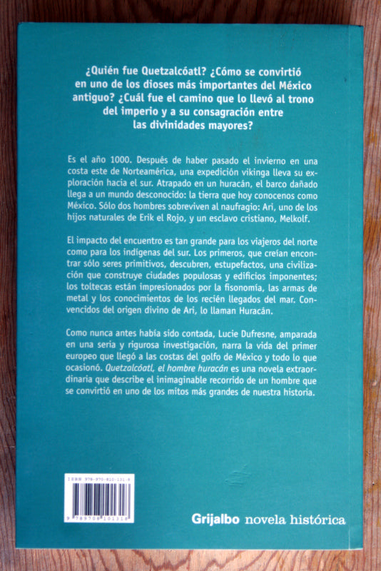 Es el año 1000. Después de haber pasado el invierno en una costa este de Norteamérica, una expedición vikinga lleva su exploración hacia el sur. Atrapado en un huracán, el barco dañado llega a un mundo desconocido: la tierra que hoy conocemos como México. Sólo dos hombres sobreviven al naufragio: Ari, uno de los hijos naturales de Erik el Rojo, y un esclavo cristiano, Melkolf. El impacto del encuentro es tan grande para los viajeros del norte como para los indígenas del sur. Los primeros, que creían encontrar sólo seres primitivos, descubren, estupefactos, una civilización que construye ciudades populosas y edificios imponentes; los toltecas están impresionados por la fisonomía, las armas de metal y los conocimientos de los recién llegados del mar. Convencidos del origen divino de Ari, lo llaman Huracán. Como nunca antes había sido contada, Lucie Dufresne, amparada en una seria y rigurosa investigación, narra la vida del primer europeo que llegó a las costas del golfo de México y todo lo que ocasionó. Quetzalcóatl, el hombre huracán es una novela extraordinaria que describe el inimaginable recorrido de un hombre que se convirtió en uno de los mitos más grandes de nuestra historia.