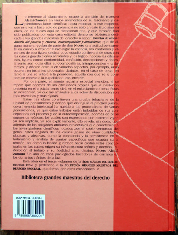 Eugene Florian, Francisco Carnelutti y Niceto Alcalá-Zamora, Ed. Jurídica universitaria, 2001, vol. 1: “Elementos de derecho procesal penal”, 298 p. Vol. 2: “Cuestiones sobre el proceso penal”, 265 p. Vol. 3 “Estudio acerca del allanamiento en el proceso penal”, 122 p. Pasta dura en buen estado, 21.6 x 28.9 cm #elarbollibreriadeuso.