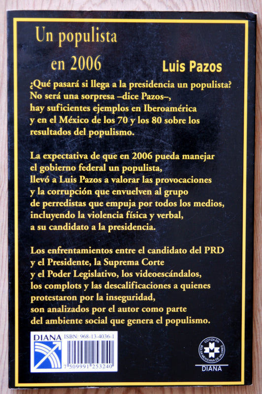 Luis Pazos, Ed. Diana, 2004. Rústica en buen estado general, primera hoja manchada, interior perfectamente legible, 129p. 23x15cm. #elarbollibrerideuso